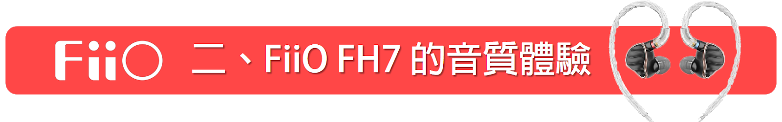 在這對 FH7 的音質做點小總結,FH7 在高頻、中頻和低頻的比重上非常均衡,聲音並沒有偏向哪一個音域。FH7 在高頻表現我覺得很不錯,高頻很透亮、乾淨,而且有力道,聽起來會有種清脆感和尤其是聽女高音唱歌時,會有總撫摸蠶絲的感覺。FH7 中頻部分,中頻人聲聽起來算是小暖,至少沒有動鐵會有的冷感,聽起來很舒服,聲音細節很豐富,且中頻的聲音給人的豐富感和厚度是很夠的。FH7 低頻部分,他和以往 FiiO 耳機不同,FH7 的低音渾厚,下前深度夠,而且非常有力道,聽低音多的歌曲真的會讓人有"動次動次"的感覺。不過在三頻以外的部分,讓我最近驚訝的其實 FH7 的音場很廣,同時聲音很乾淨,對各種聲音的解析度和聲音的定位都很棒,用 FH7 聽演場會的音樂或是交響樂真的會有一種就在現場的錯覺,我認為這是讓我最驚豔的地方。