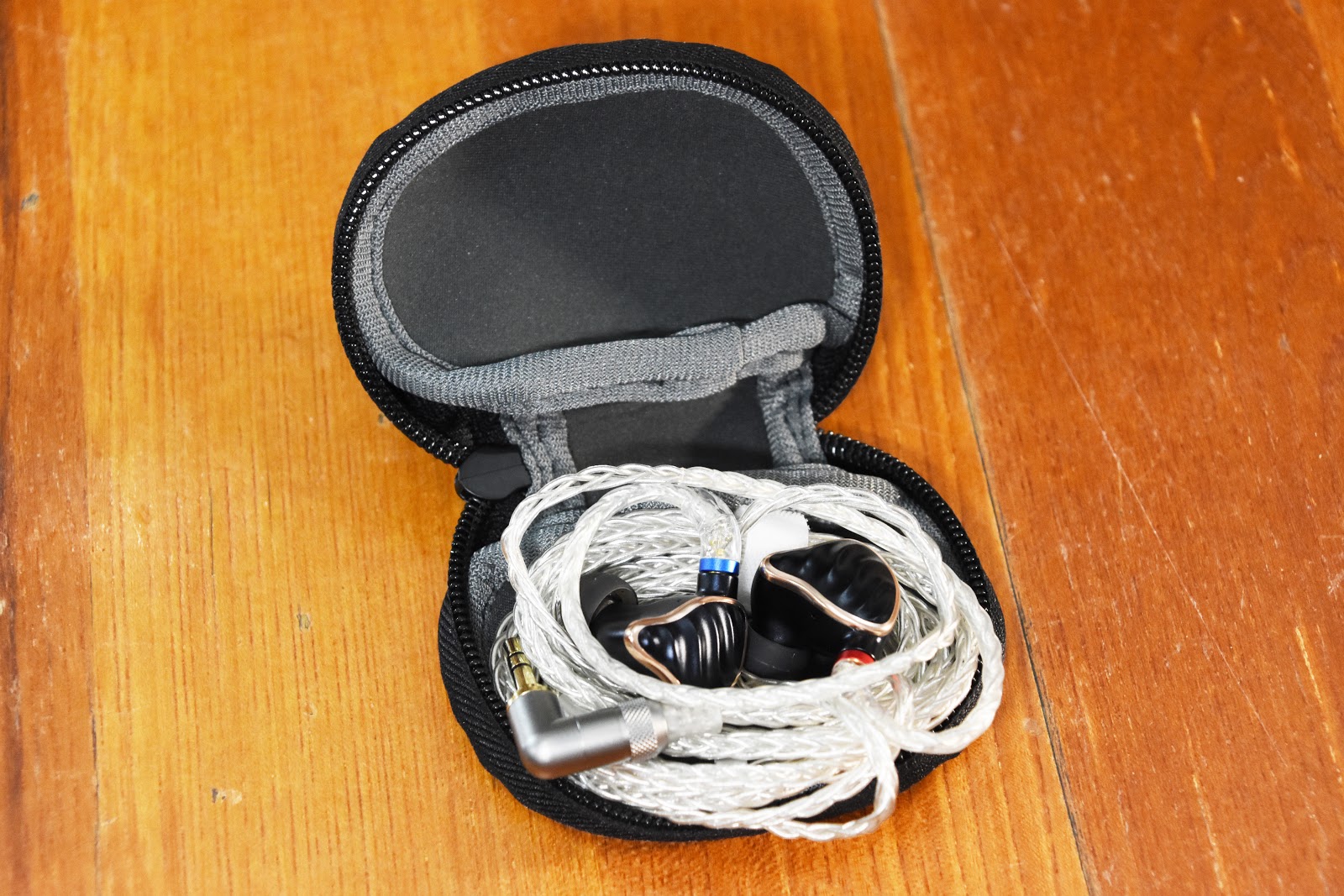 ▼ FiiO FH7 收好後放入布套保護袋的樣子,這樣收起來的感覺是非常擁擠,不過我實際使用起來是覺得還可以。