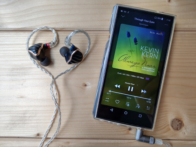 凱文科恩這首 Through Your Eye 是一首幾乎以鋼琴為主體,搭配上吉他、小提琴的一首很柔和的音樂,用 FiiO FH7 來聽這首音樂,鋼琴和其他樂器的聲音沒有多大的渲染,樂器的聲音真實。同時鋼琴琴鍵的聲音可以說是每個琴鍵都很分明,不會有泥沼感,連鋼琴彈下去的震動感都可以忠實呈現。FH7 在樂器演奏和表現很不錯,我相信聽純音樂的歌曲或是交響樂會是很不錯的選擇。