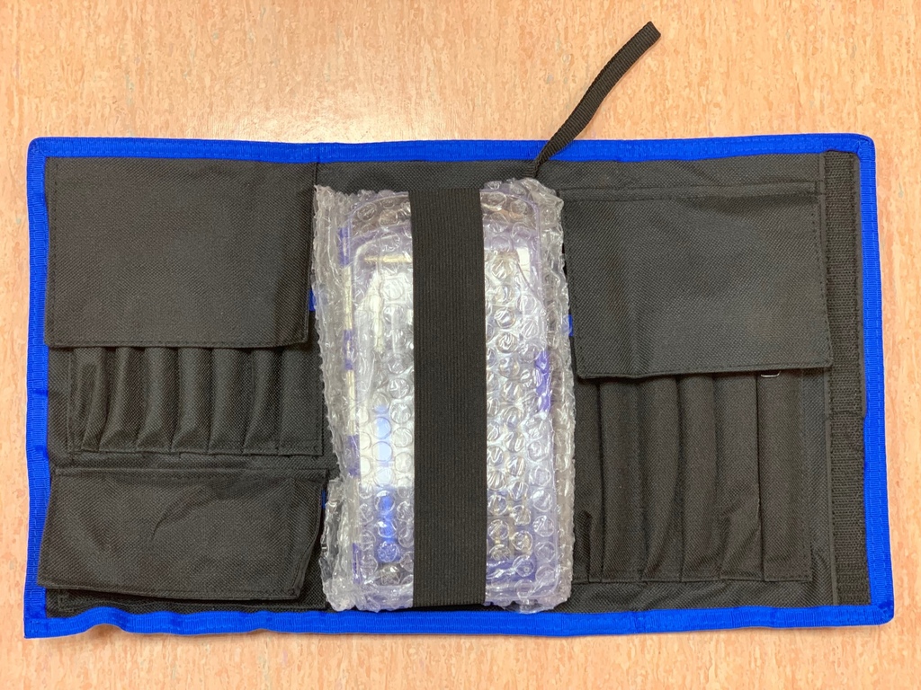 這個工具組為尼龍外袋,質感還不錯,正面有 OWC 的 Logo,可以跟我的手比較一下大小,
