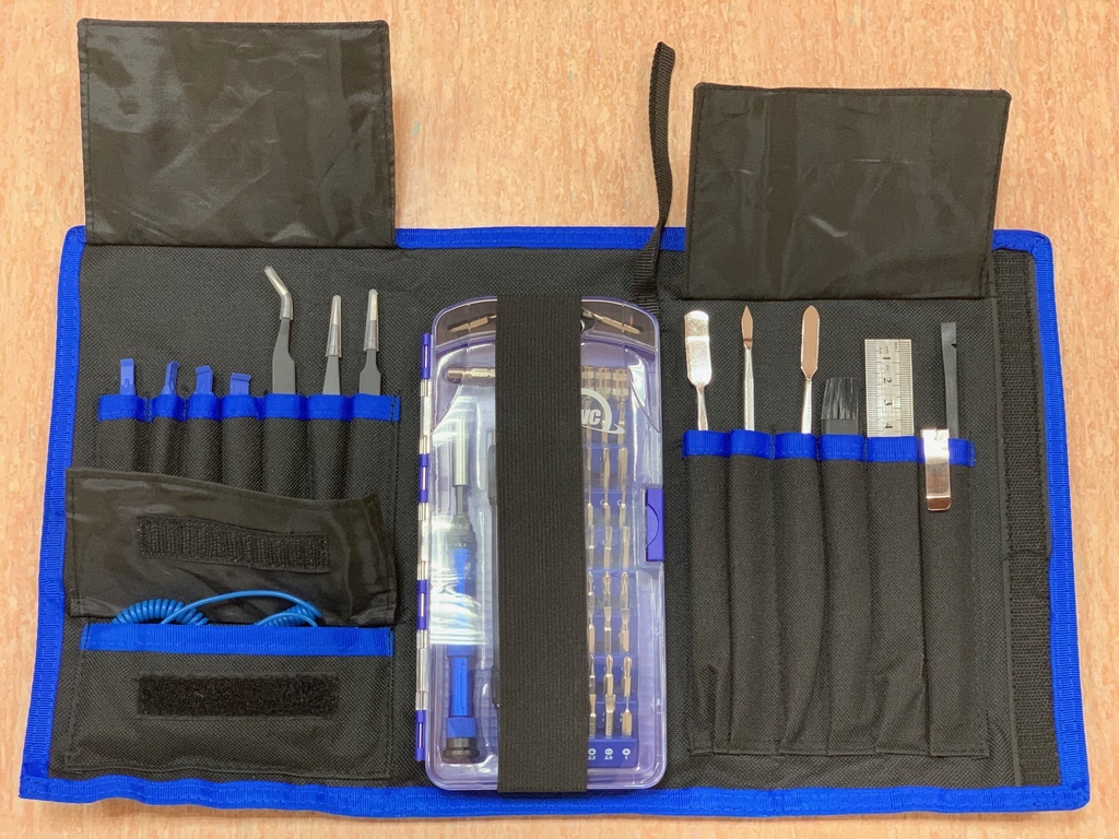 • 右側為金屬翹棒三支, 防靜電刷、 六吋金屬尺、萬用小刀、 塑膠翹棒