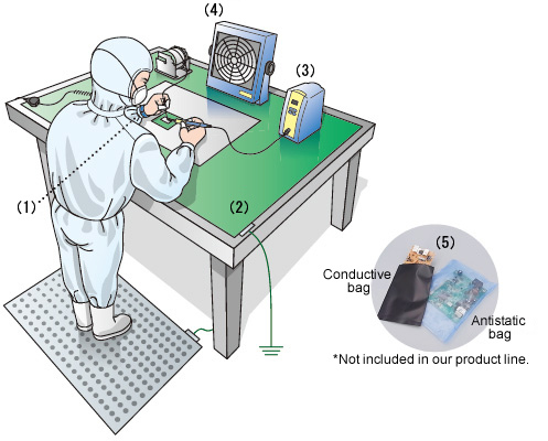 使用時的示意圖,鱷魚夾的一端接上防靜電接地線。(本圖取自網路,版權歸原創者所有)