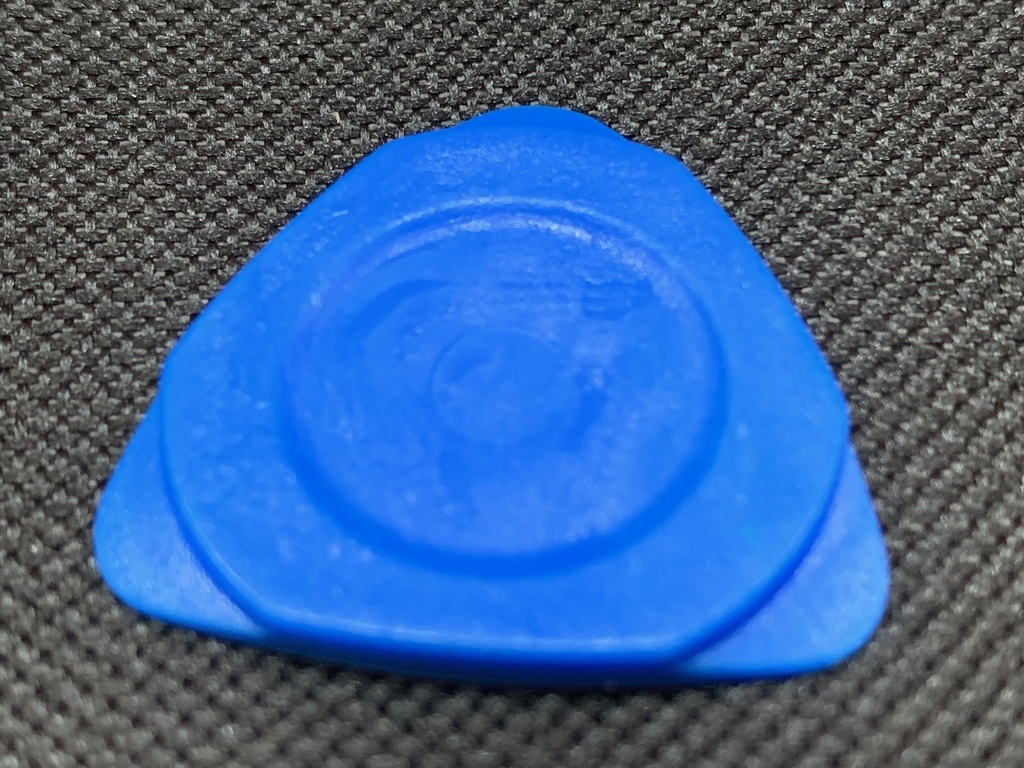 三角撥片 (Triangle plectrum),狀似吉他彈片 (pick) 一般,邊緣薄但中間厚,中央有凹陷方便抓取,功用為撬開機身並分離組件,尤其是有些上膠或是有卡榫的組件,可以滑動來加以分離。