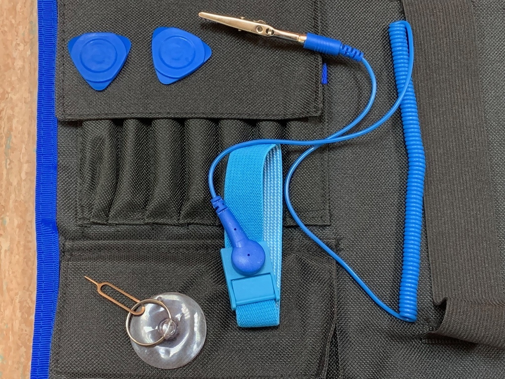 接下來看看左側下半部,裡面有抗靜電手腕帶、三角撥片、螢幕吸盤等等。