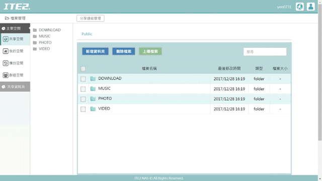 ▼ 除了共享空間、群組空間、我的空間和下載空間能夠在 PowerCloud 上使用外,其他 NE-201 的資料夾一律都無法讀取,我想這可能是安全性的考量吧。