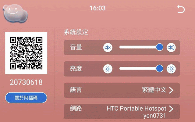 ▼ 「關於」可以知道阿福寶的很多資訊,同時也可以初始化阿福寶。