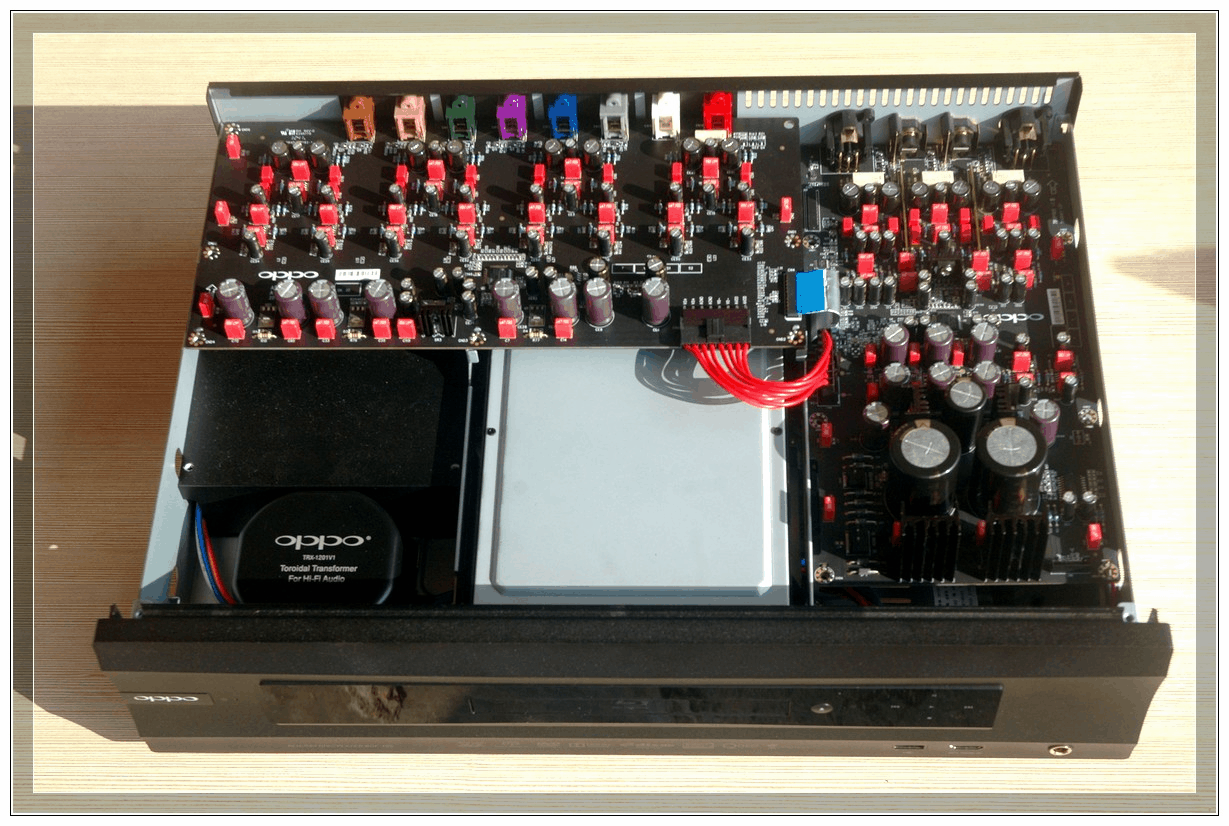 拆開本機,初步可分為兩個重點:影像處理與播放部分+聲音的前級解碼輸出,而不管哪一部分都有很貼心的設計,讓人覺得他不只是一台播放機,還是台綜合輸入的前置處理器。