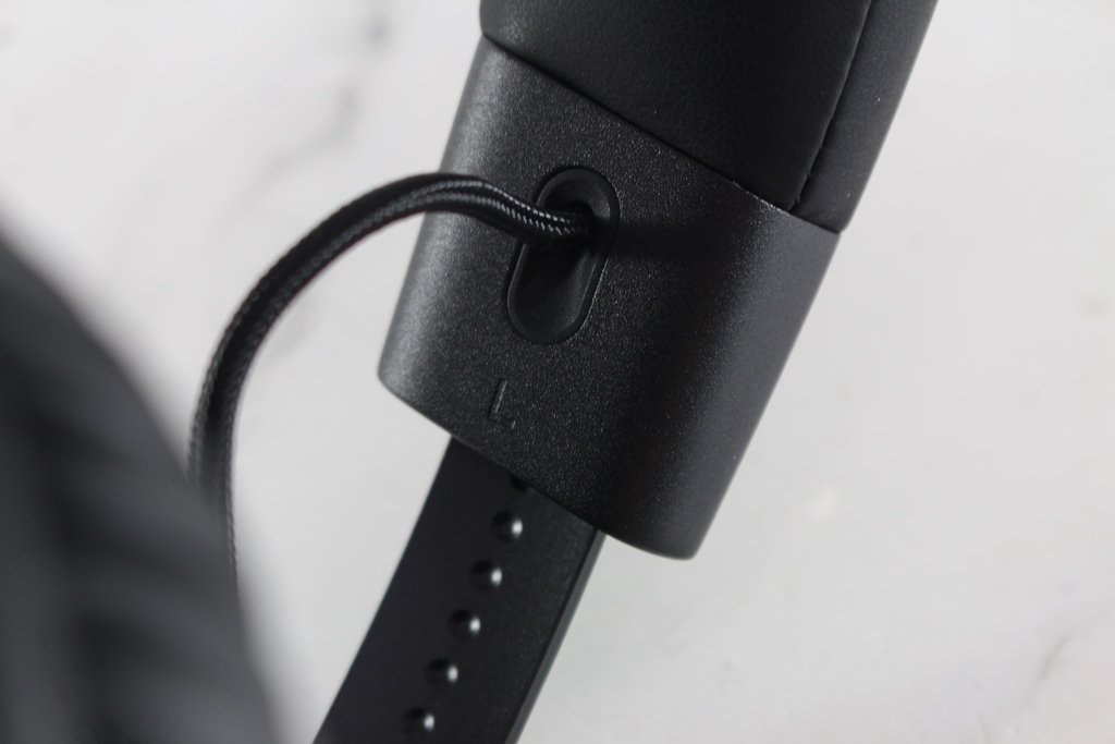 ▼耳機內側標示產品型號、認證標誌與左右耳