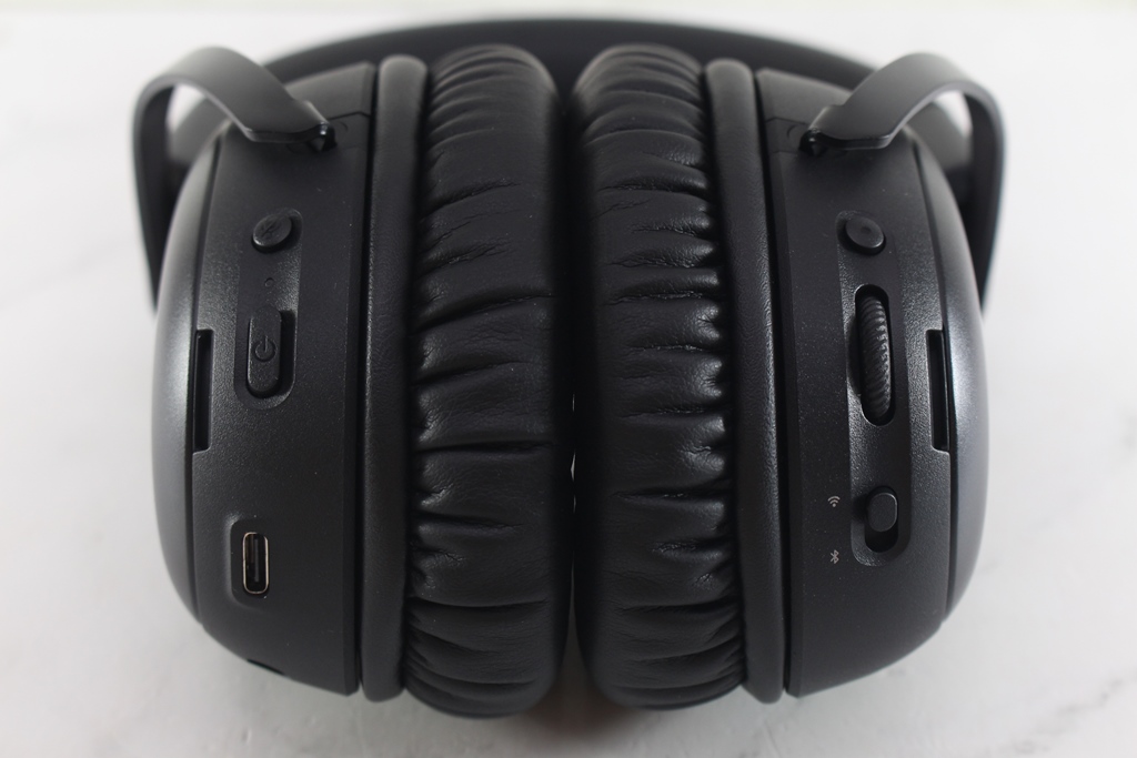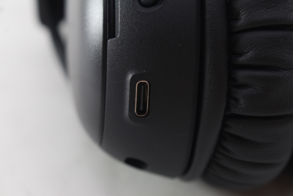 ▼左側有麥克風靜音、狀態指示燈號、電源開關、USB Type-C充電埠與麥克風連接埠