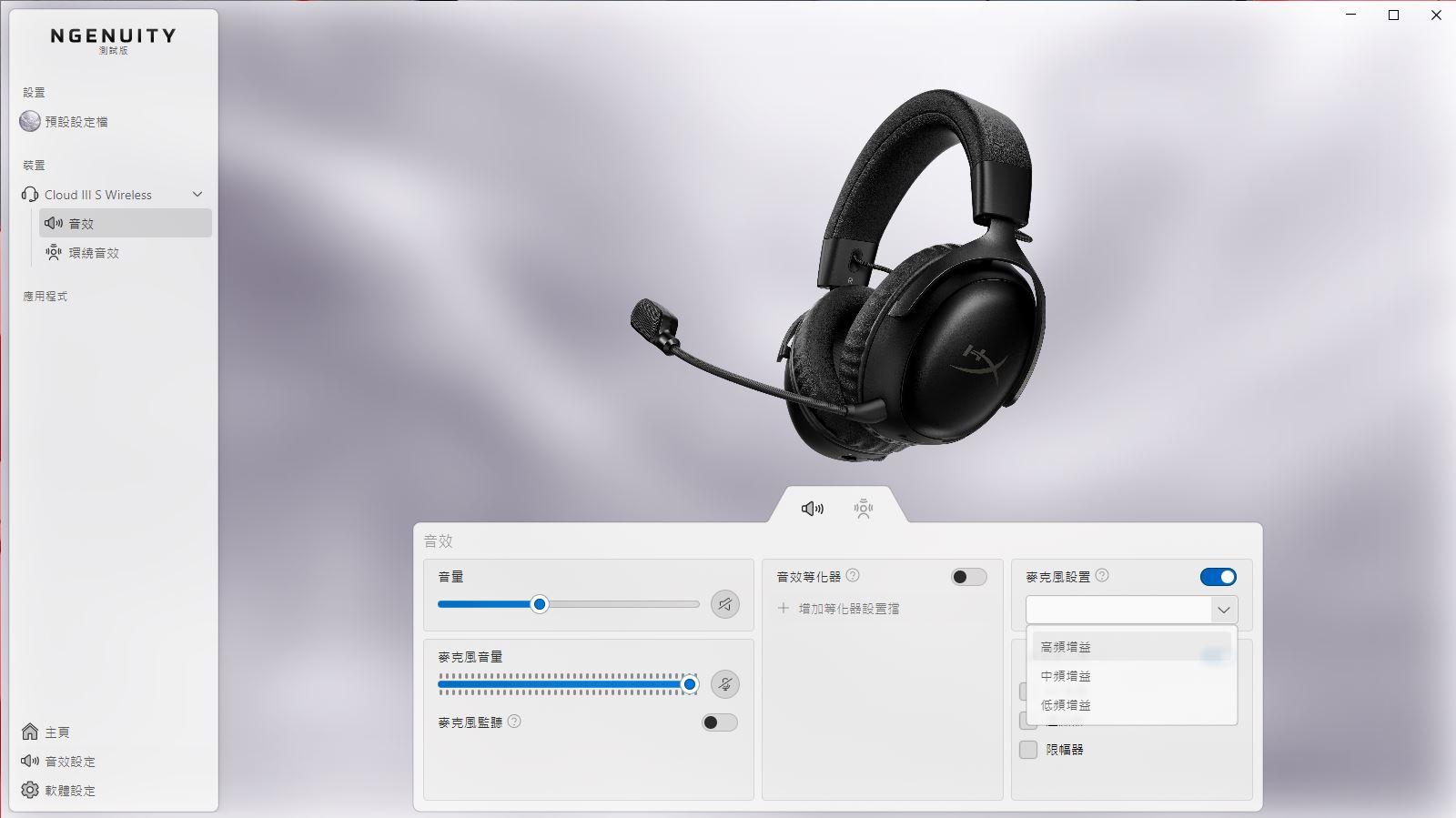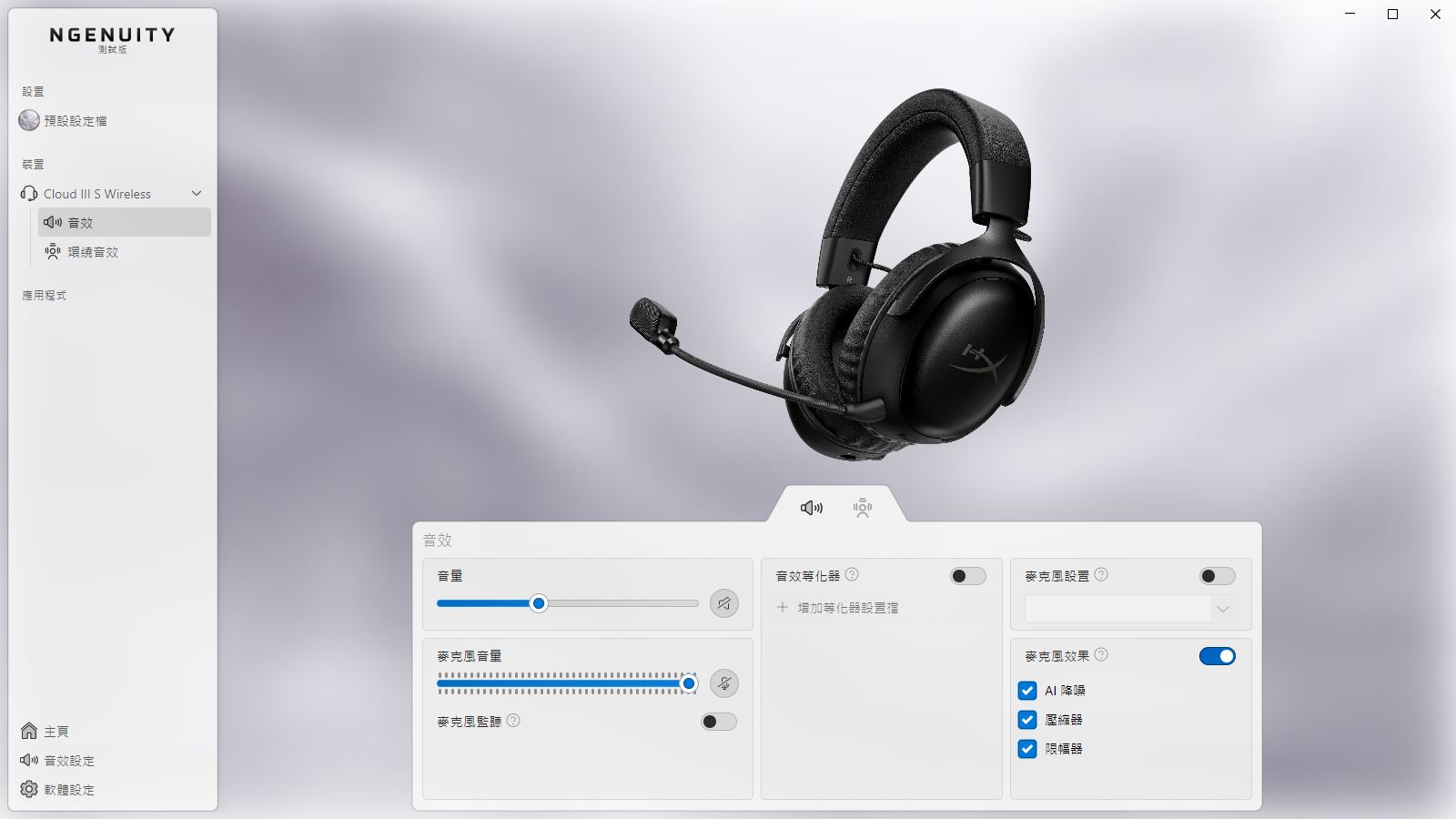 HyperX Cloud III S Wireless電競耳機這次導入新版軟體,讓使用者可以獲得新體驗,這次新版軟體除了介面也大幅度的變更,讓操作上更好上手,此外主打的是環繞功能,環繞功能有更多細部的調整,讓使用者可以針對喜好與使用環境調整,打造出屬於自己的專屬聽感!也讓Cloud III S Wireless電競耳機在各種應用環境中都能找出最佳的呈現方式,就算是看劇、看電影或是聽音樂也都有著非常出色的表現,已經擁有HyperX Cloud III S Wireless電競耳機的玩家們可以去下載軟體來搶鮮體驗,還沒入手的玩家也可以趕快手刀入手體驗它的魅力!