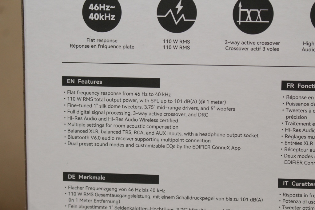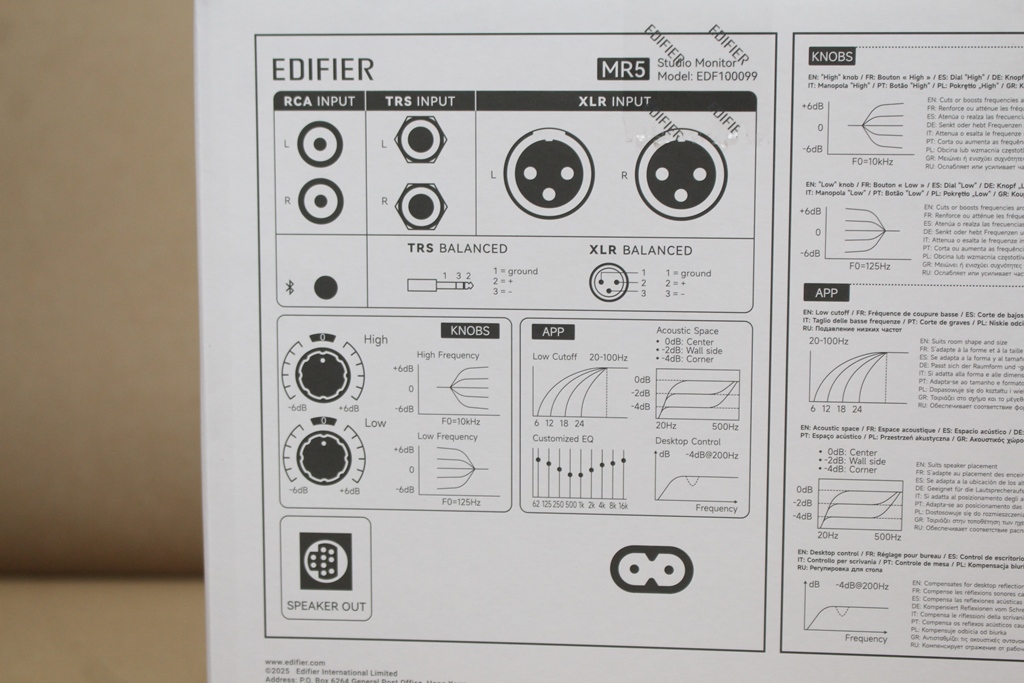 EDIFIER的喇叭產品非常豐富,從入門到中階高產品都非常齊全,且表現都有一定的水準,這次要來介紹專業監聽喇叭『MR5』,MR5箱體採用木質結構,再搭配上貼皮處理,低調又不失質感,單體方面採用1英吋絲質圓頂高音單體,帶來平滑自然的高音,中低頻則採用3.75英吋單體,提供充沛的音量與人聲還原,低頻搭載5英吋單體,讓使用者可以體驗到強而有力且Q彈的震撼感,左右聲道共提供110W總功率;連接方式提供RCA輸入、TRS輸入、XLR輸入與無線藍牙,各種應用都能輕鬆搞定,還可以透過手機App軟體調整細部設定,更有內建兩組EQ,還可以自行調整EQ,達到更高的自由度,功能非常齊全完整,馬上就來看EDIFIER MR5專業監聽喇叭帶來的表現吧!