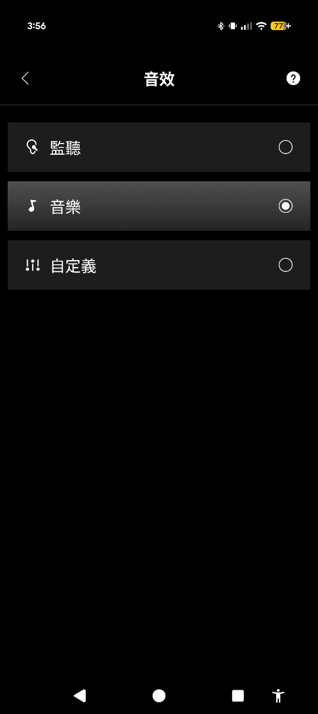 ▼音效可以選擇內建的監聽與音樂兩種EQ,也可以自定義EQ