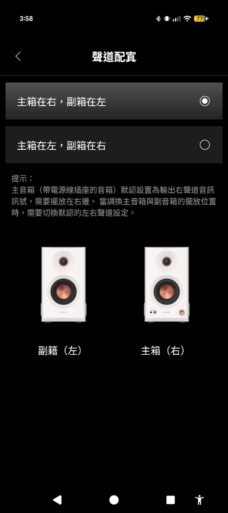 ▼左右聲道主箱設定,可依照擺放需求來調整