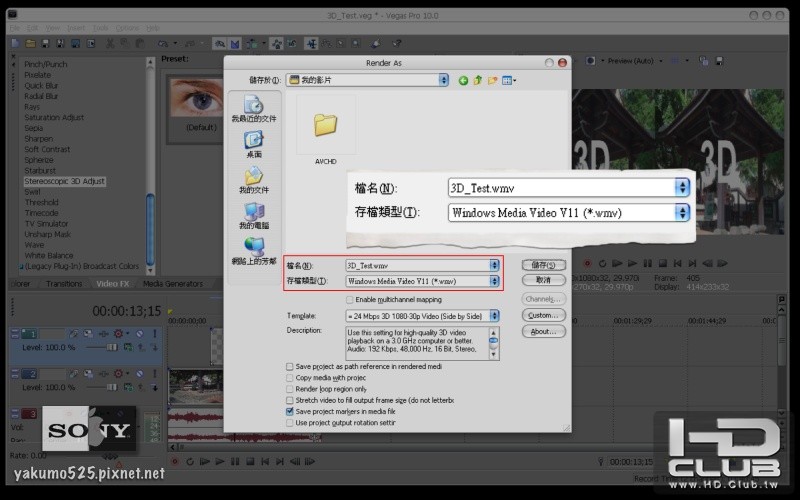 而 Vegas Pro 提供的 BD3D 功能的主要用途就像官網上寫的那樣,為正式發行前做測試準備用的