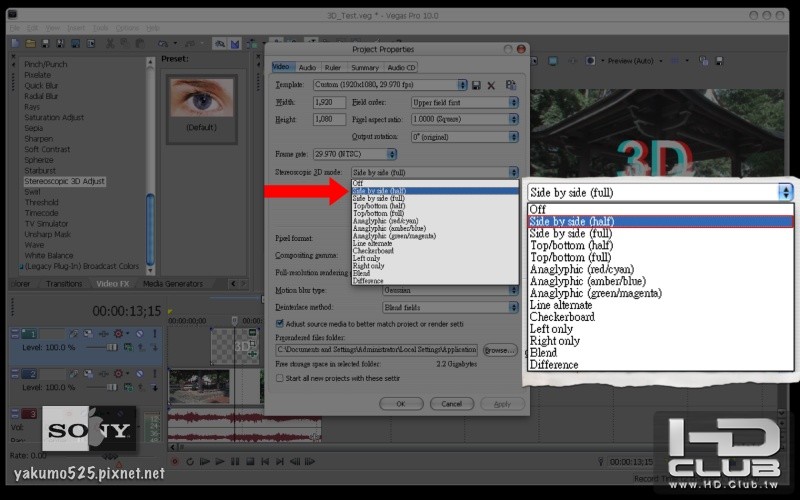 ps: 接下來的示範將採用 Full HD 3D 的 MVC 影片,故選擇 Side by Side (full) 模式