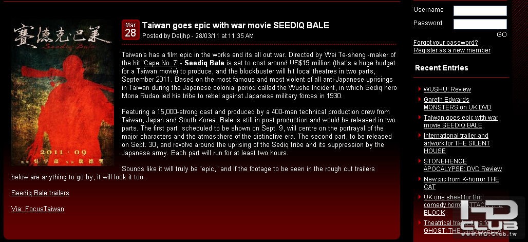 新浪娛樂訊 由吳宇森監製、魏德聖執導,台灣有史以來投資最大的電影《賽德克-巴萊》,將於2011年9月在台灣上映。日前,台灣遠流出版社出版了該片的電影畫冊,介紹了許多不為人知的幕後花絮。