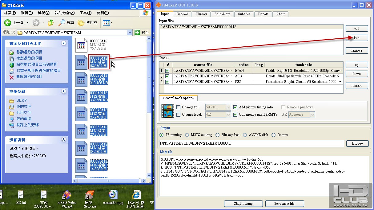 [教學] 快速合併 videocamera 許多 AVCHD mts 為單一 mts 或 Blu-Ray