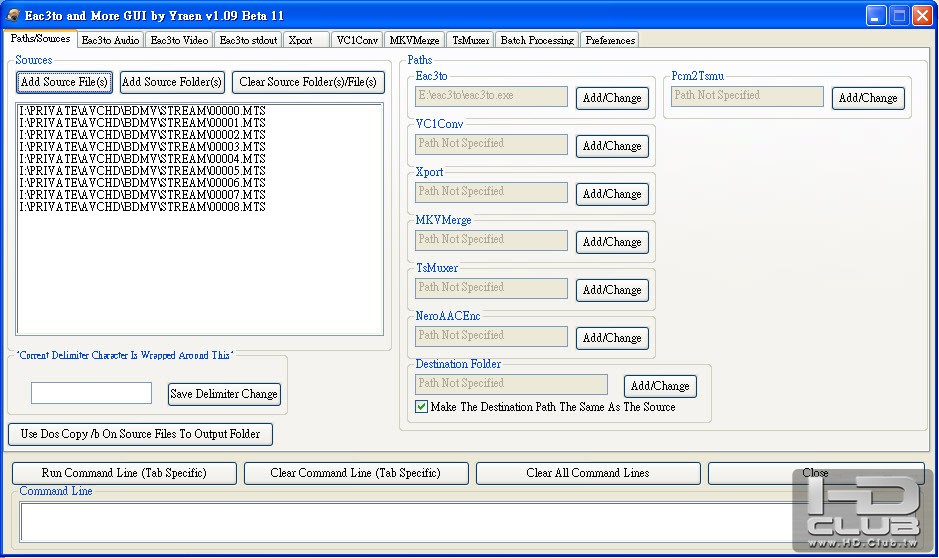 ps. 先用 eac3to.exe 處理音軌是為了單用 tsmuxer 合併多片段 mts 會輸出聲畫不同步的檔案