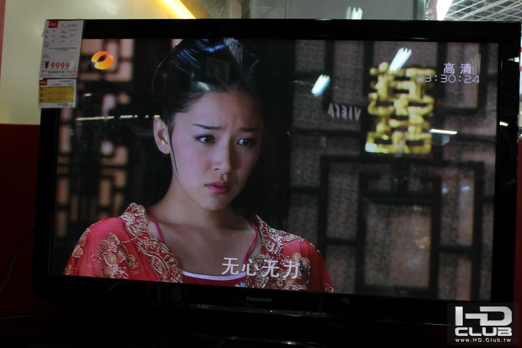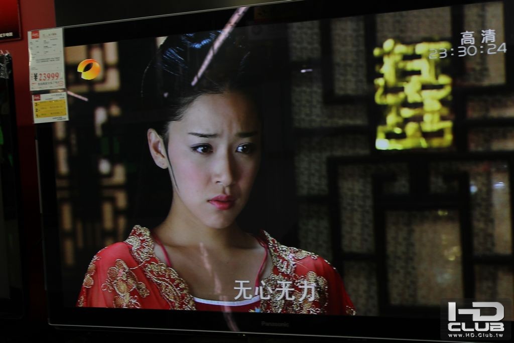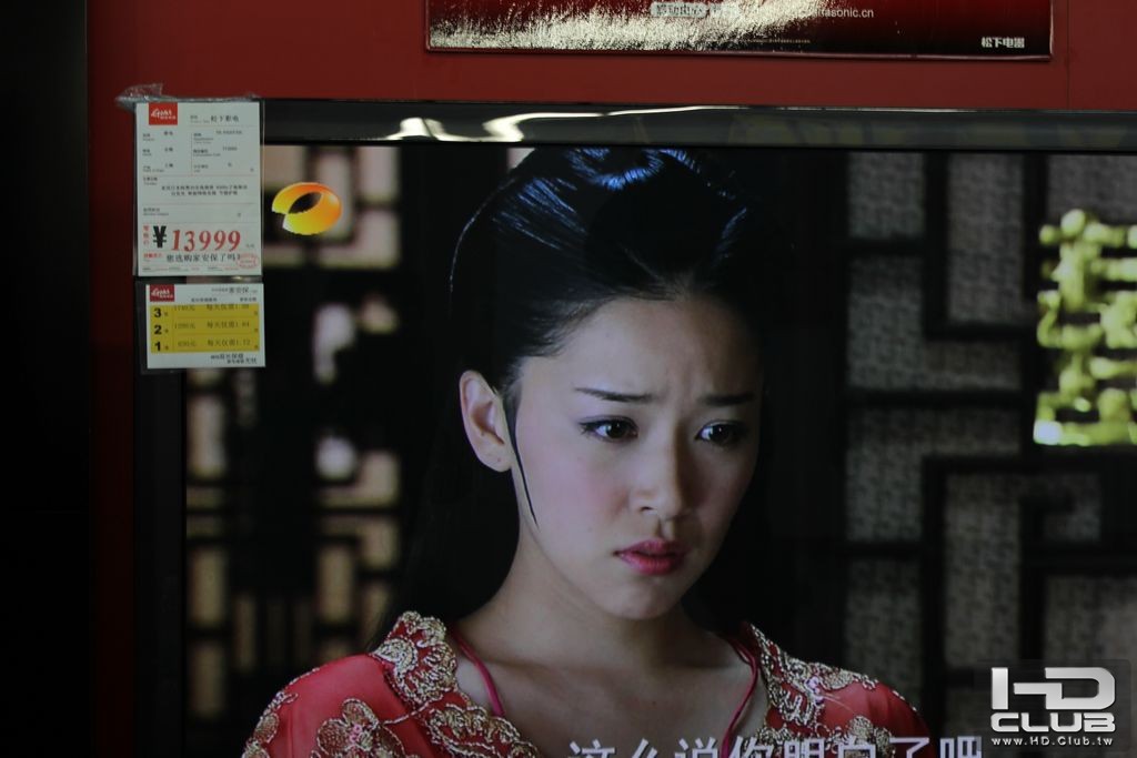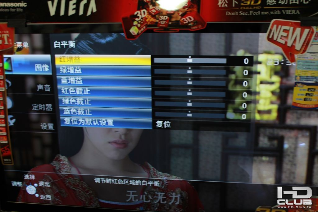 Pnasonic的专柜从中间醒目的55VT31起,右边一排分别排列着50ST30/50GT30/50UT30/46GT30。首先将几款电视按影院模式设置好,55VT31设置成THX模式后画质发暗,没法再卖场环境中体现其高端旗舰的身份,无奈中将VT31设置成影院模式了。