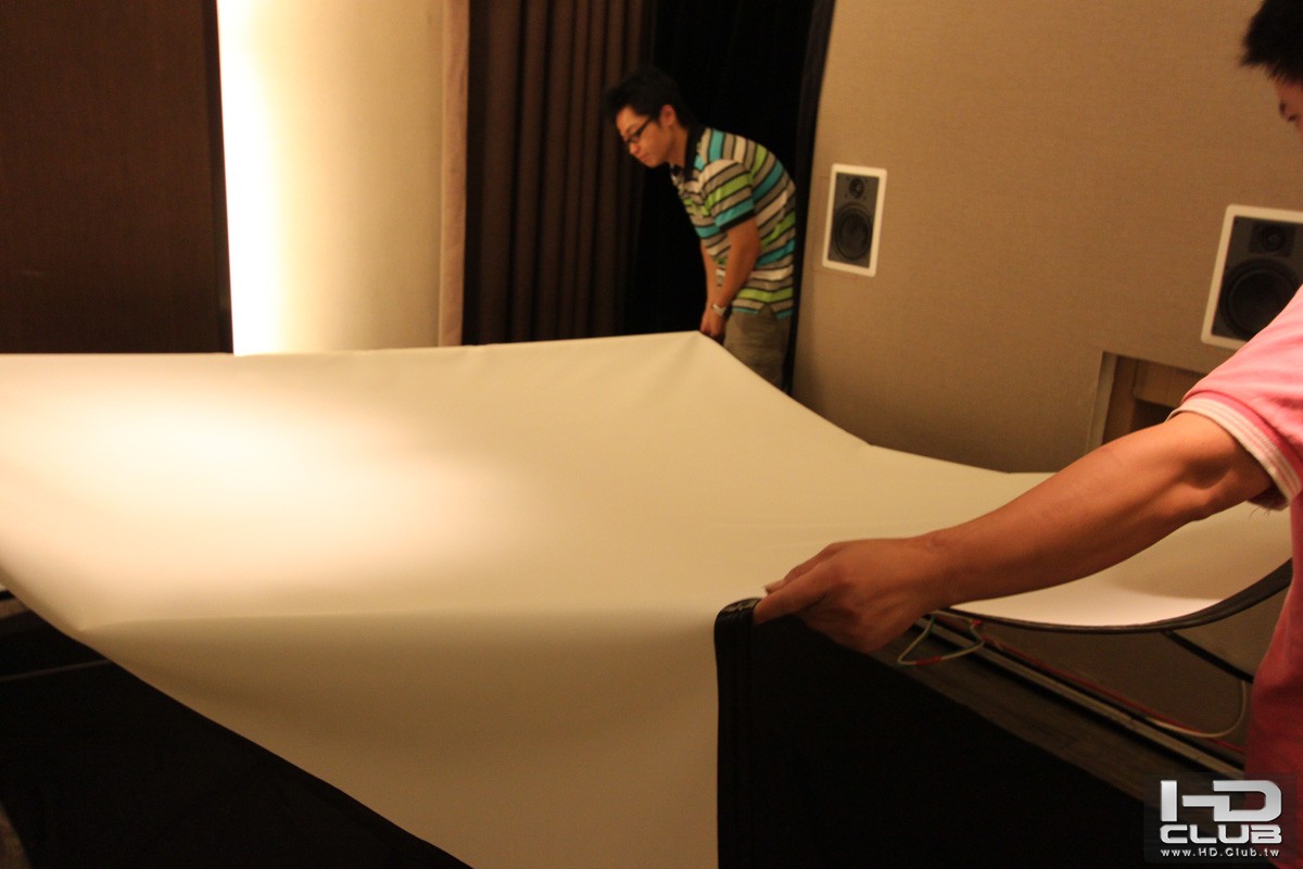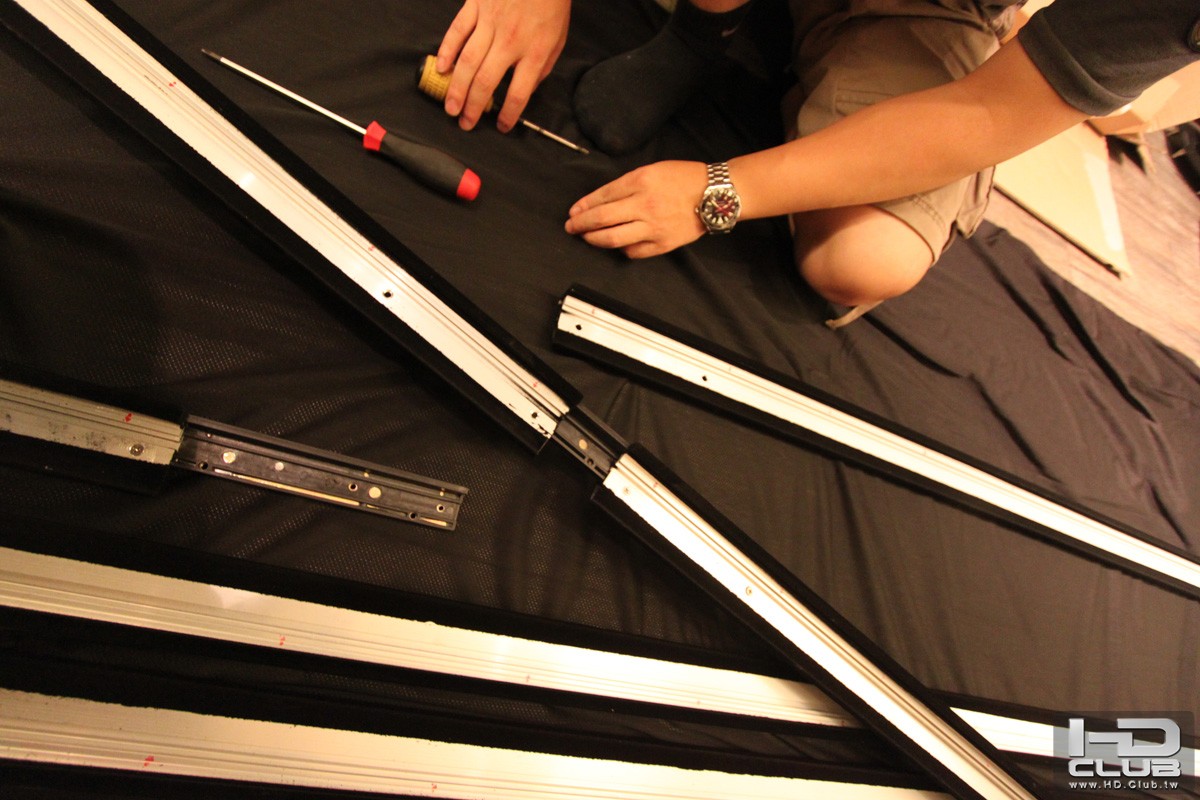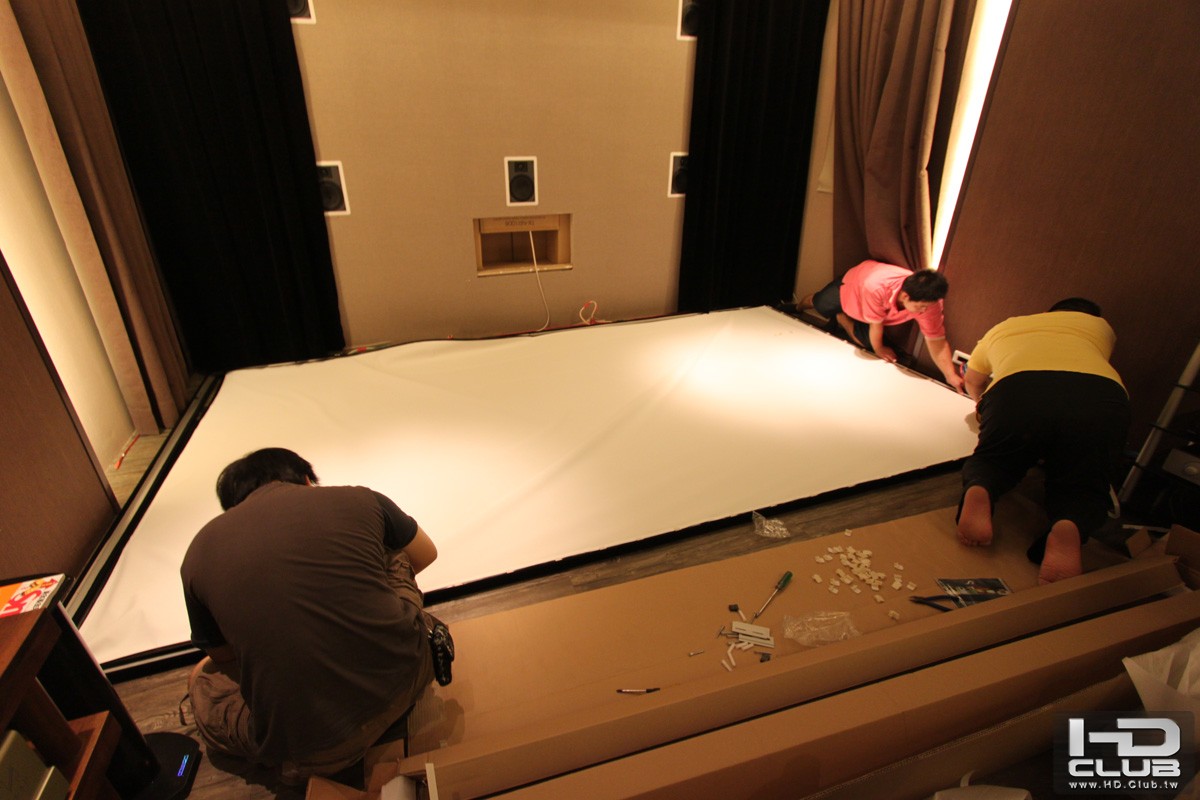 聽說固定幕的拉緊及繃平.不是像麻將桌的紙那麼簡單.
