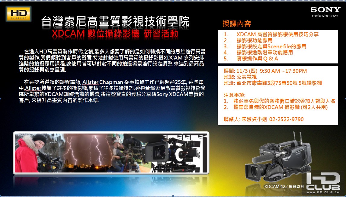 Sony台灣官方舉辦 XDCAM數位攝錄影機 研習活動