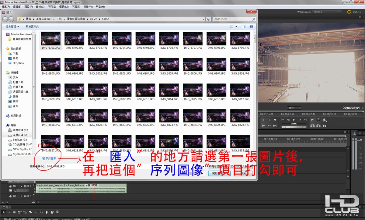 把所有的需要串連的圖片檔名改為連續性:在匯入的時候就會串起來,為1格1張照片!