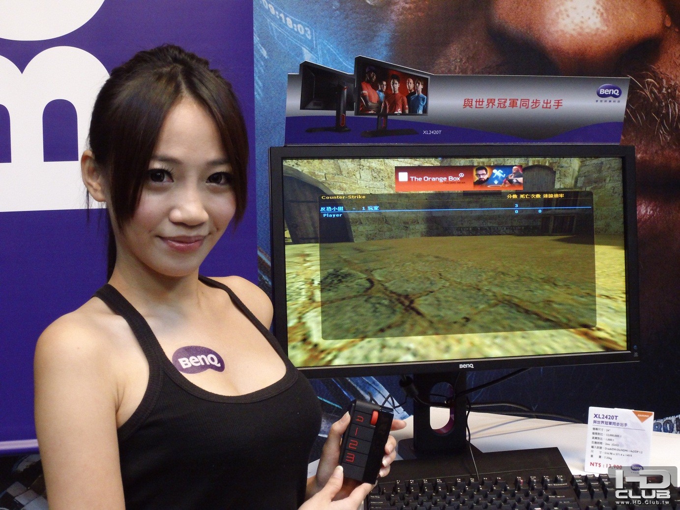 FPS (第一人稱射擊)電競旗艦機種、支援nVidia 3D XL2420T BenQ XL2420T 24吋LED液晶顯示器具備120Hz掃描頻率、高動態對比1千萬比1,2毫秒(GTG)反應時間,支援3D(NVIDIA® 3D Vision™ 2),PBP雙重影像顯示等功能,全新機種更有黑平衡(Black eQualizer)模式,能調整局部亮度,讓暗部細節浮現但無須整體調亮刺激雙眼,同時獨創智慧快捷鍵(S switch),玩家可自由設定喜歡的模式後存取記憶,就可配合各種使用情形做模式切換。新一代腳座高低調整可將螢幕壓到最底絕對滿足玩家需求,而個人化螢幕尺寸設定熱鍵(hot key)更擴增到七種尺寸變化,及由世界冠軍電競傳奇巨星HeatoN和 SpawN親自調校設計的專業FPS情境模式,玩家還可自己設計二種遊戲模式讓畫面的銳利度、亮度與對比都完全貼近使用需求,與世界冠軍同步出手。