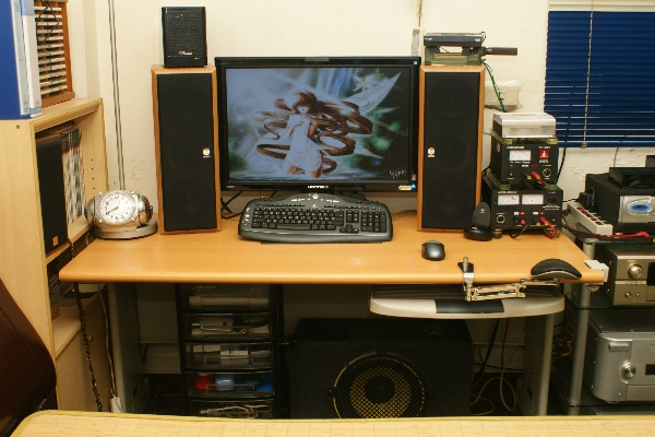 2006年 自己決定把2套音響裝到臥室,開始走入玩-2套音響領域(電腦及家電)同時使用好處,比較麻煩是顯示器及電視輸出,換ATI顯卡後調校及輸出可以順利同時輸出(電腦下載完成影片,可以直接到5.1聲道),一邊上網一邊聽音樂或看影片,慢慢開始了解AV擴大機可以聽音樂.玩電腦影音及PlayStation 2遊戲 (大部份時間只用其中一套音響)開始淘汰光碟片,走硬碟儲存影音早期 組成2套音響 ,使用及操作比較簡單方便,而且播放軟體持續更新,播放影音比較沒有問題。