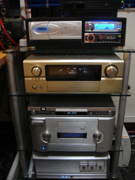 2008到2009年 因為從除役陽字號到左營拉法葉艦工作,在家的時間較多,汽車音響比較好聽所以決定把車上擴大機 ,改到家用提升音響的音質, DENON (AVR-3805G)負責(後環繞喇叭),後級 AB類60W擴大機3組及增加大型電容器3組負責(中聲及左右聲道)