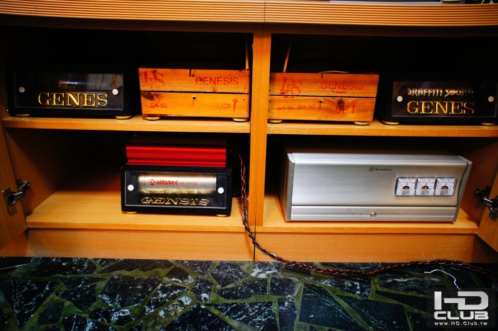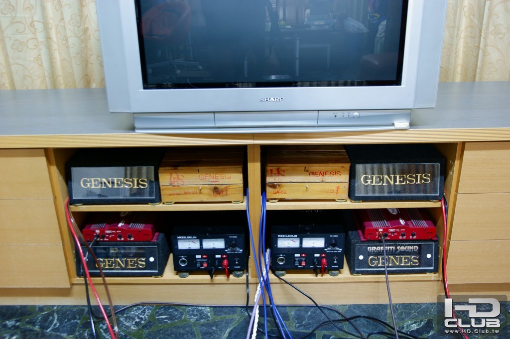 2006到2007年 因為不能滿足自己聽音樂及看影片音效需求,原因是沒有辦法到感覺汽車音響音質.音量及音效,請教老闆如何提升音響的音質,開始把汽車音響改到家的後級音響(A.B類60W擴大機3組)及喇叭(德國_歌蘭蒂-車用L-409-cx喇叭)DENON 7.1聲道AV擴大機(AVR-3805)為主。負責(中聲及後環繞喇叭),再經AV環繞擴大機(為前級信號來源。輸出到(後級Genesis AB類 60W擴大機一組, 負責左右聲道為主及歌蘭蒂喇叭)。