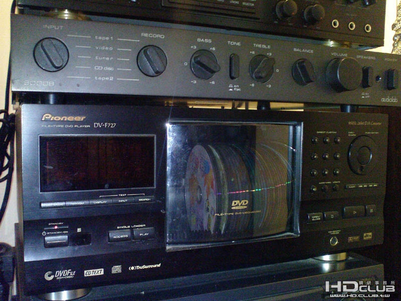 後級音響器材 電視櫃後級音響器材 目前用PHILIPS DVD播放機播放5.3聲道,海美迪HD300A 多媒體播放機播音樂.影片及歌蘭帝 5690 單片主機播放CD音樂及收音機功能 未來會再增加一部電腦負責影像及音源解碼(買電腦,因為沒有電腦解不動及容量限制)