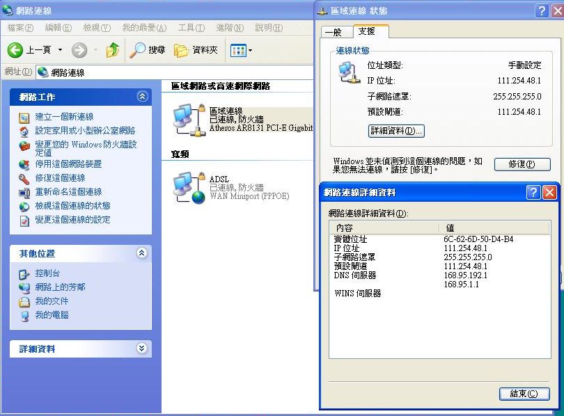 請問ADSL路由器的閘道與LCD的閘道是相同的嗎?