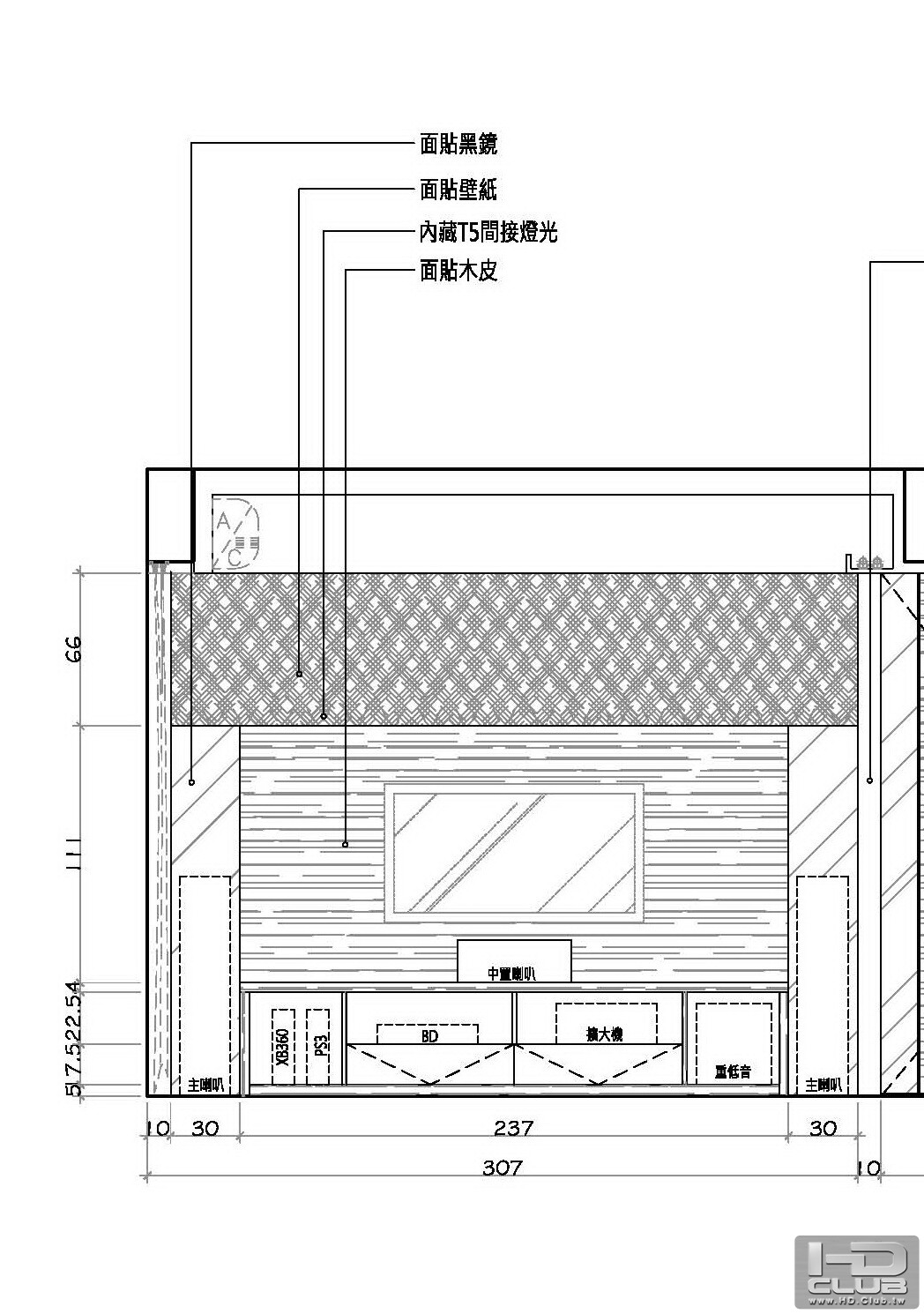 目前規劃5.1聲道,後環繞為美觀的因素打算用崁入式