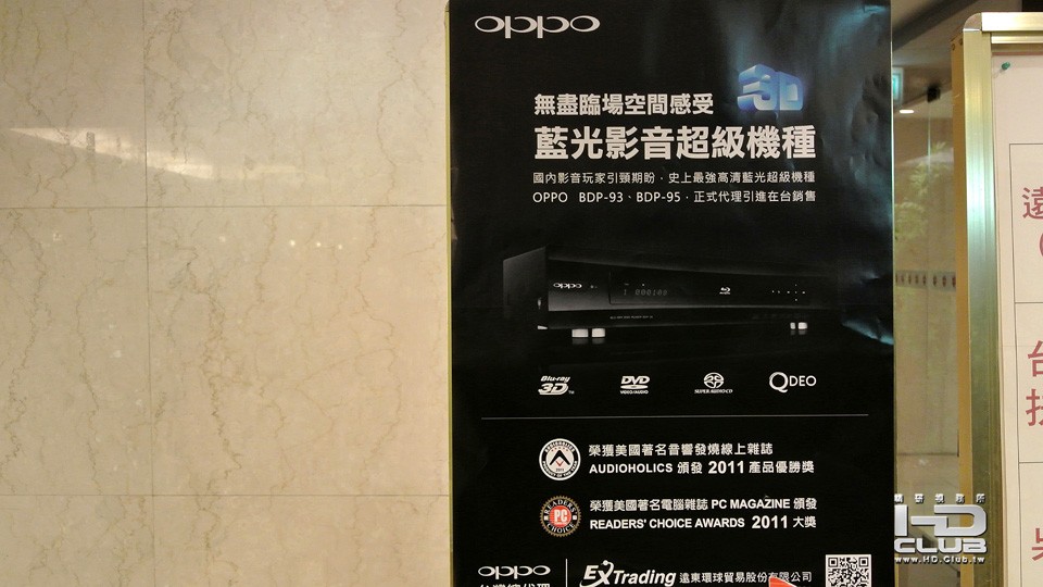 由遠東環球貿易總代理的影音雙霸"OPPO藍光播放機與Atlantic家庭劇院"於2012年3月27日(二)假台北王朝大飯店舉辦盛大的影音產品發表會 , 發表會現場備有精美茶點以及影音體驗區、產品展示區 ,原廠也特別邀請HD.Club精研視務所參與這場盛會。