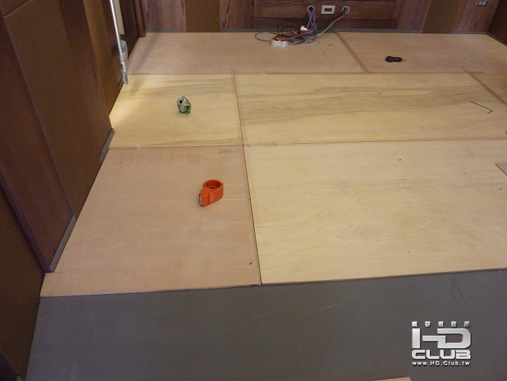 由於視聽室位於頂樓(四樓),完成後一直有樓板隔音的問題存在.每一次不管是聽音樂或是看影片.位在三樓視聽室下方的房間都會有低音轟轟做響的聲音.而且會有將低音放大的作用.這種低音的轟炸還真是非常的令我頭痛.為了可以盡情的在視聽室享受和敦親睦鄰.所以決心要再一次的施工將這個問題解決. 上網查過所有的資料一直找不到適當的解決方法.還好經由小謝大大熱心的提供適當解決方法和觀念.在這裡就將這一次施工的過程做一個簡單的介紹. 這一次所購買的材料主要有兩種.一個就是小謝大大所介紹的十全龍.另外一個是6 mm 厚的隔音墊.這種隔音墊根據廠商所提供的資料在 125HZ 有29dB 250HZ 有 31dBA 的隔音系數.它的尺寸每一卷是 1mX10m 重120kg. 這一次地板的施工順序如下: 由下往上鋪設的順序為 3cm 厚的十全龍 +9mm木心板+ 6mm 隔音墊 + 3mm 夾板+ 6mm隔音墊 + 3mm 板 +12mm 的木地板.完工後的效果我還覺得O.K. 雖然沒有辦法做倒完全靜音的效果,但是至少可以讓我在視聽室享受時也不必擔心隔壁鄰居會來敲門抗議. 這是3CM 厚的十全龍