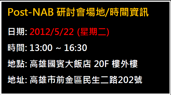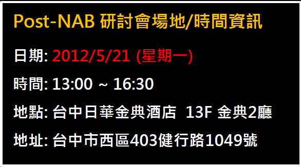 [分享] 台灣索尼2012 Post-NAB 研討會邀請(5/21台中 5/22高雄)