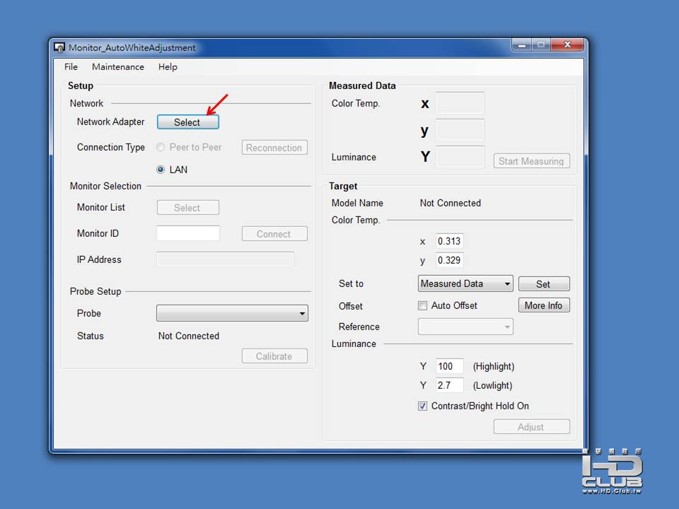 當我們連結到要校正的螢幕是. 在校正軟體上就可以看到相應的螢幕品名