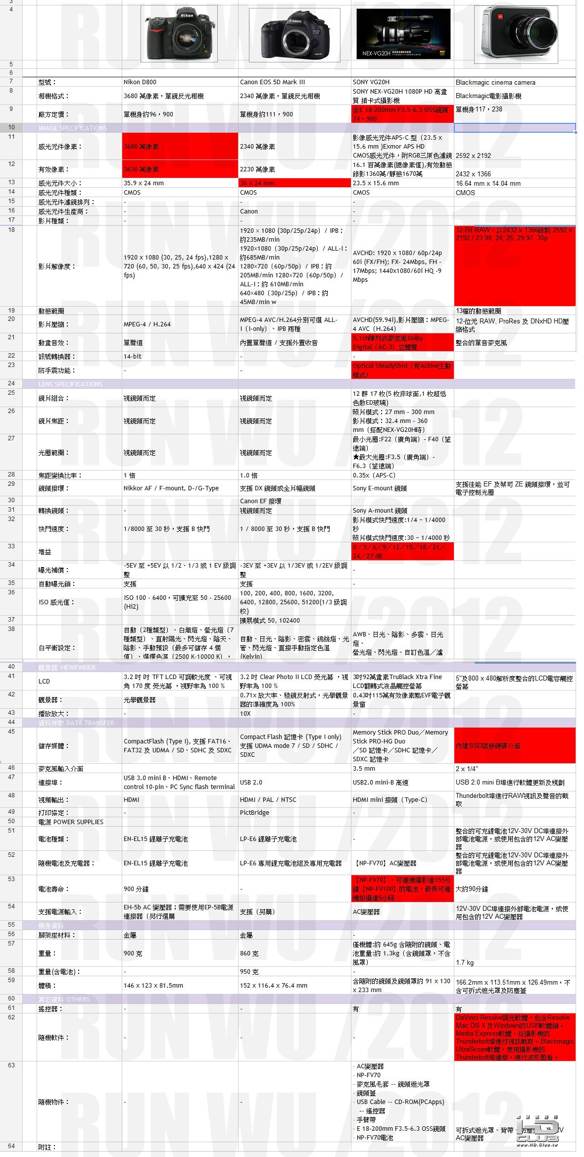 NIKON D800,CANON5D3(前兩款已經不列入考慮),SONY NEX-VG20H,BLACKMAGIC電影攝影機,或是有其他推薦