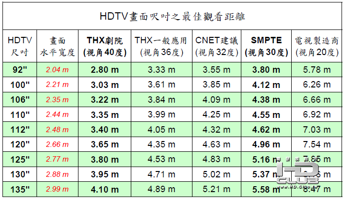 [教學] HDTV畫面尺吋之觀看距離建議(THX、SMPTE、CNET)