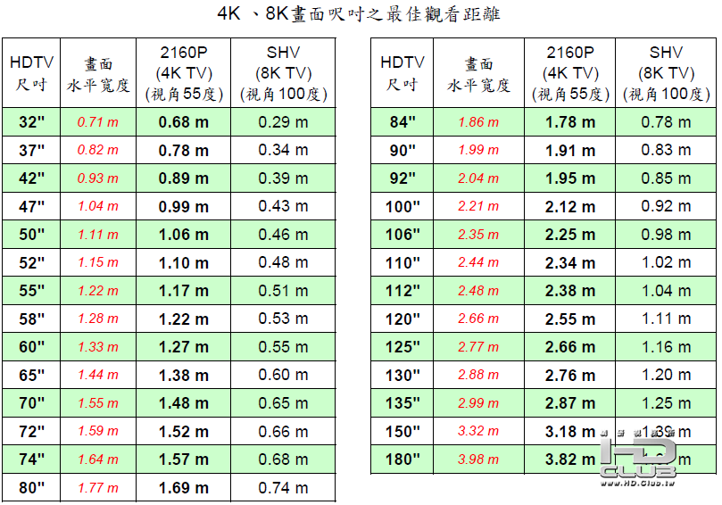可參考上述4K TV的觀看距離(55度視角)。