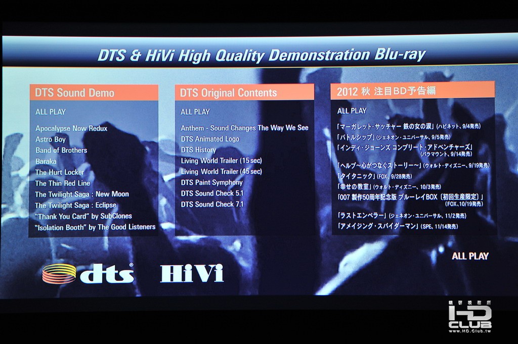 這片DEMO BD的內容主要是DTS音效的DEMO片段