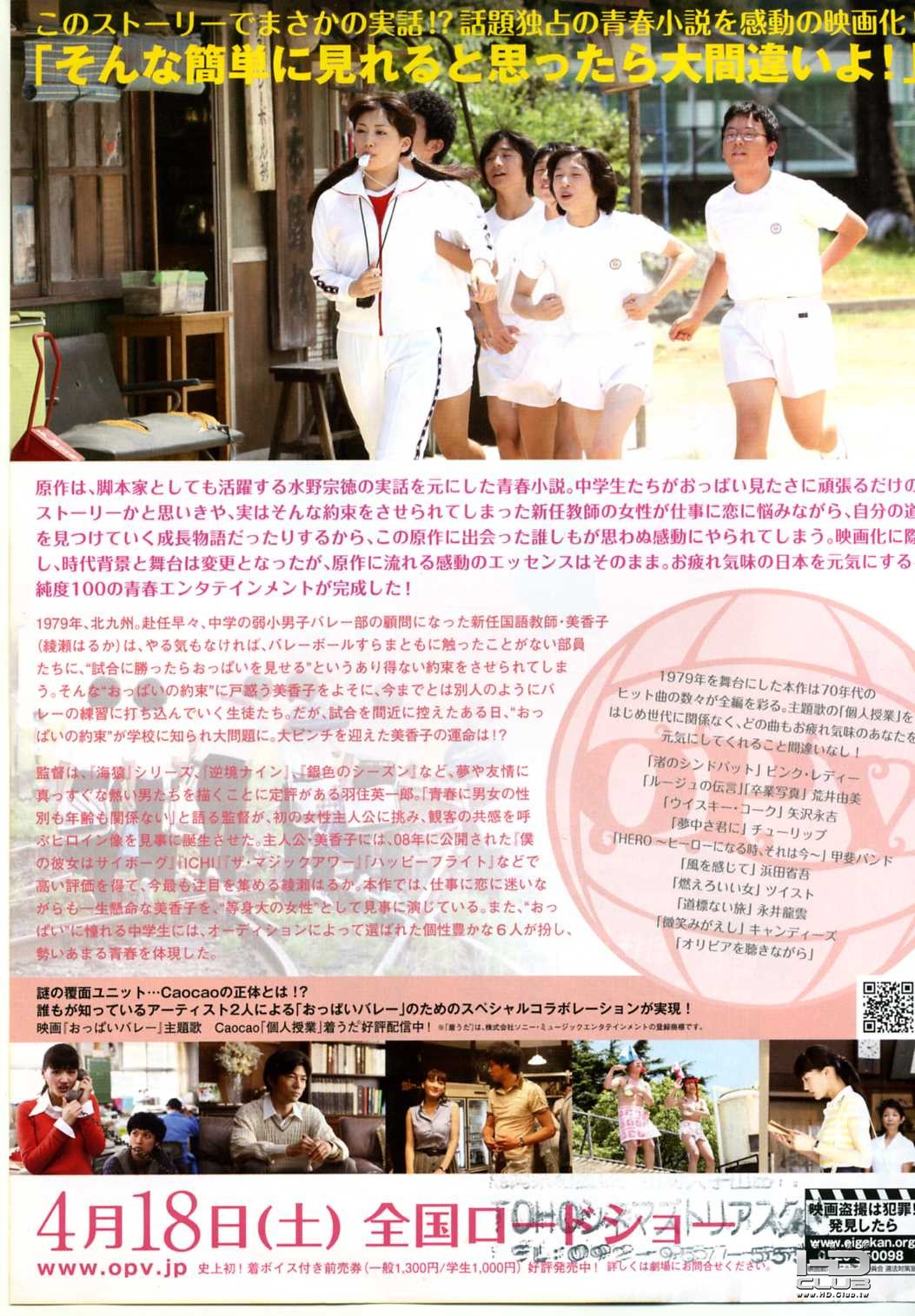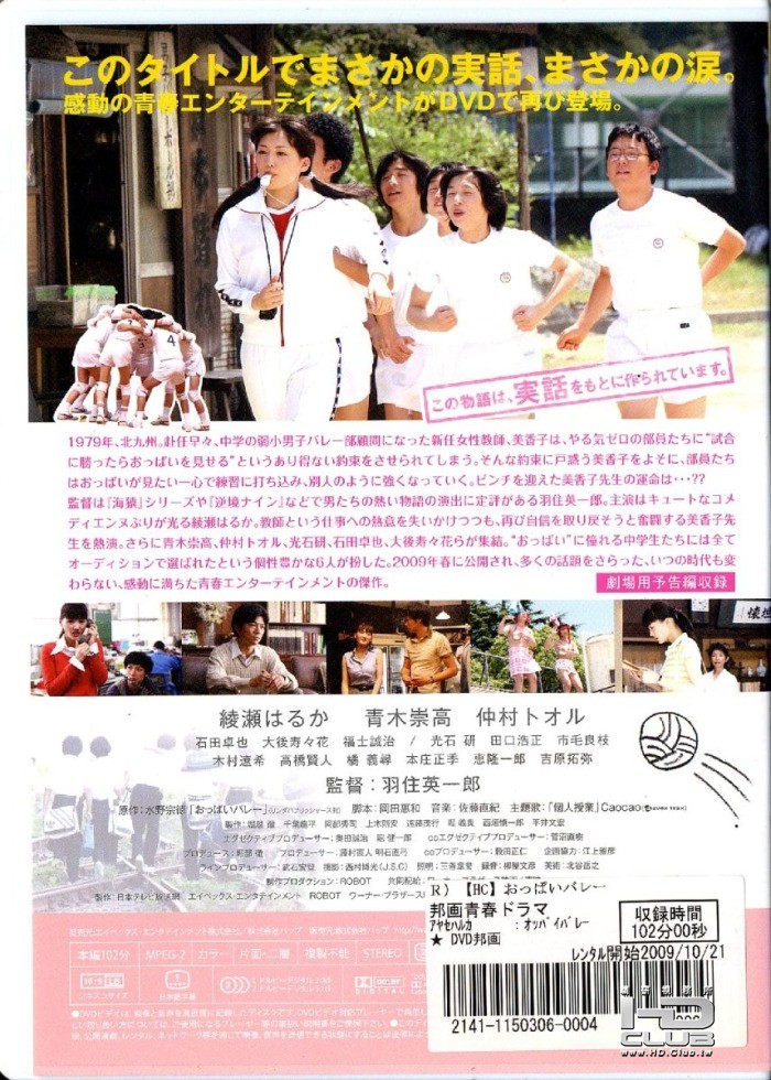 実話を基にした同名小説を『海猿』シリーズ、『銀色のシーズン』の羽生英一郎が映画化。女性教師が「勝ったらおっぱいを見せる」と約束をしたことで、弱小バレーボール部の男子中学生たちが一念発起。目標に向かって奮闘する彼らの姿を描く笑いあり涙ありの青春コメディだ。戸惑いながらも教師として成長していく女性教師を綾瀬はるかが好演。