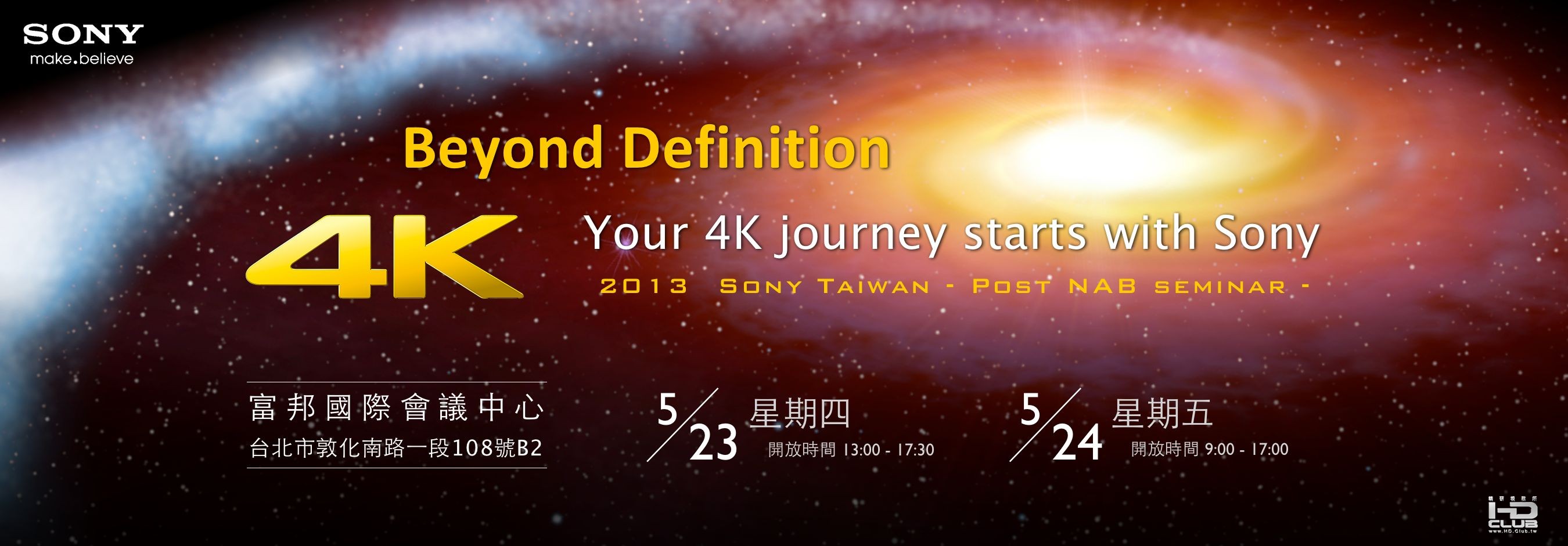 歡迎參加 2013 台灣索尼在台北舉辦的 NAB 展後研討會,我們將會引領你進入高度開放與屏息以待的未來。Sony 將是你逐步前進旅程的最佳夥伴。