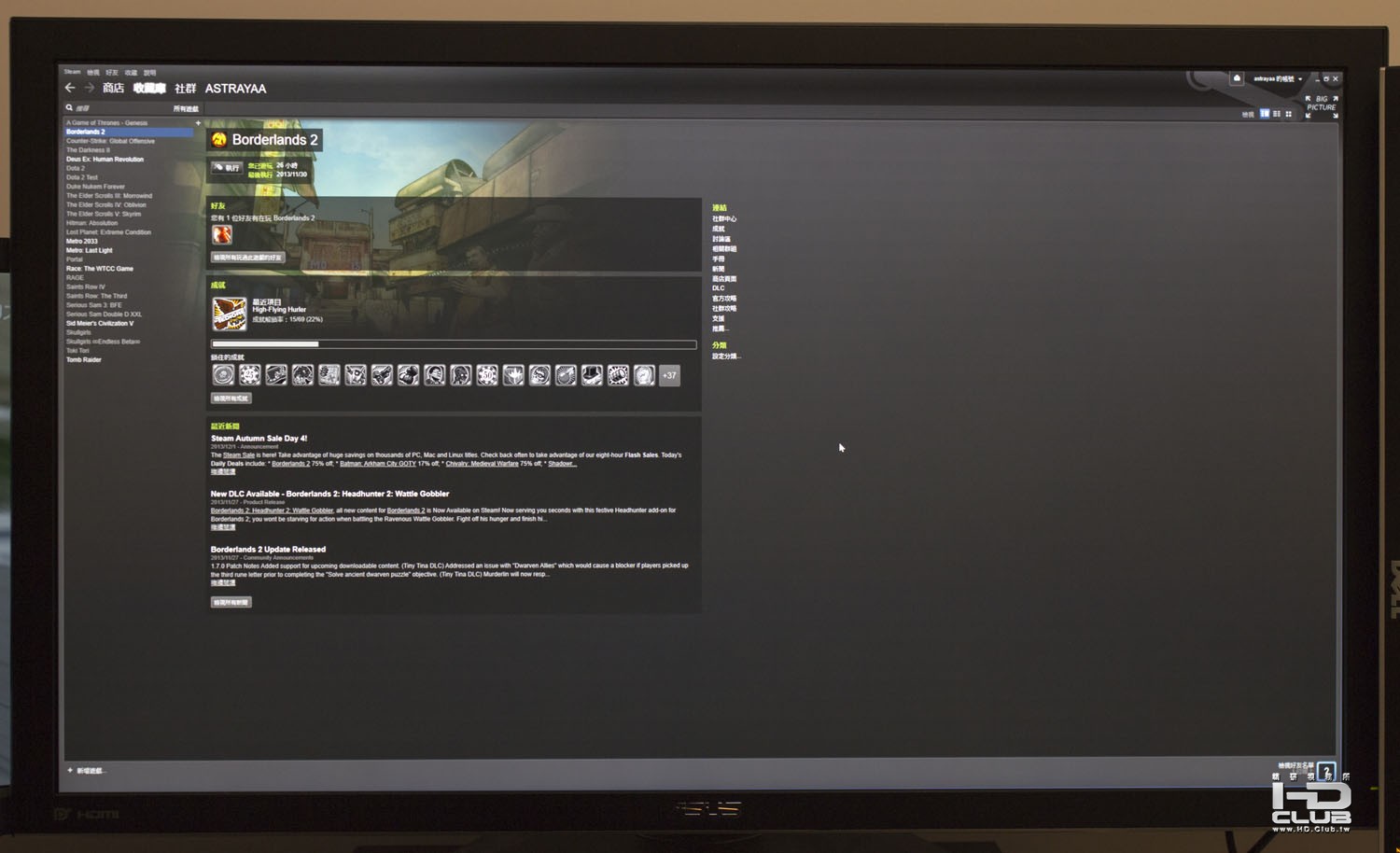 GTX 690以MST模式連接PQ321Q時,若將遊戲解析度改到1920*1080,是沒有辦法放到全螢幕的,就算選了PQ321Q的放大選項還是一樣,會被強制1:1,這張也是一個很好的例子比較4K和1920*1080大小到底差了多少。因為沒有和其他近期顯示卡做比較,不清楚這是PQ321Q或是電腦端的問題。
