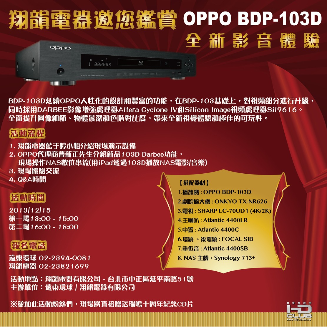 OPPO BDP-103D 鑑 賞 會 來 囉 !