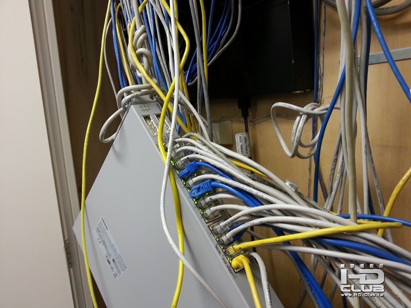 ↓拉近來看個清楚,有藍光播放機、遙控器數隻、網路數據機、電話分機、switch交換機、AV影音擴大機等;Patch Panel上依照顏色區別送到不同房間或是不同用途,這是兩年前規劃的,所以有點忘記,印象中紅色Jack的是通往客廳電視那邊接MOD、影音播放機、PS、XBOX等等,黃色是接電話分機、白色是無線基地台、綠色藍色我忘了可能是通往各房間。