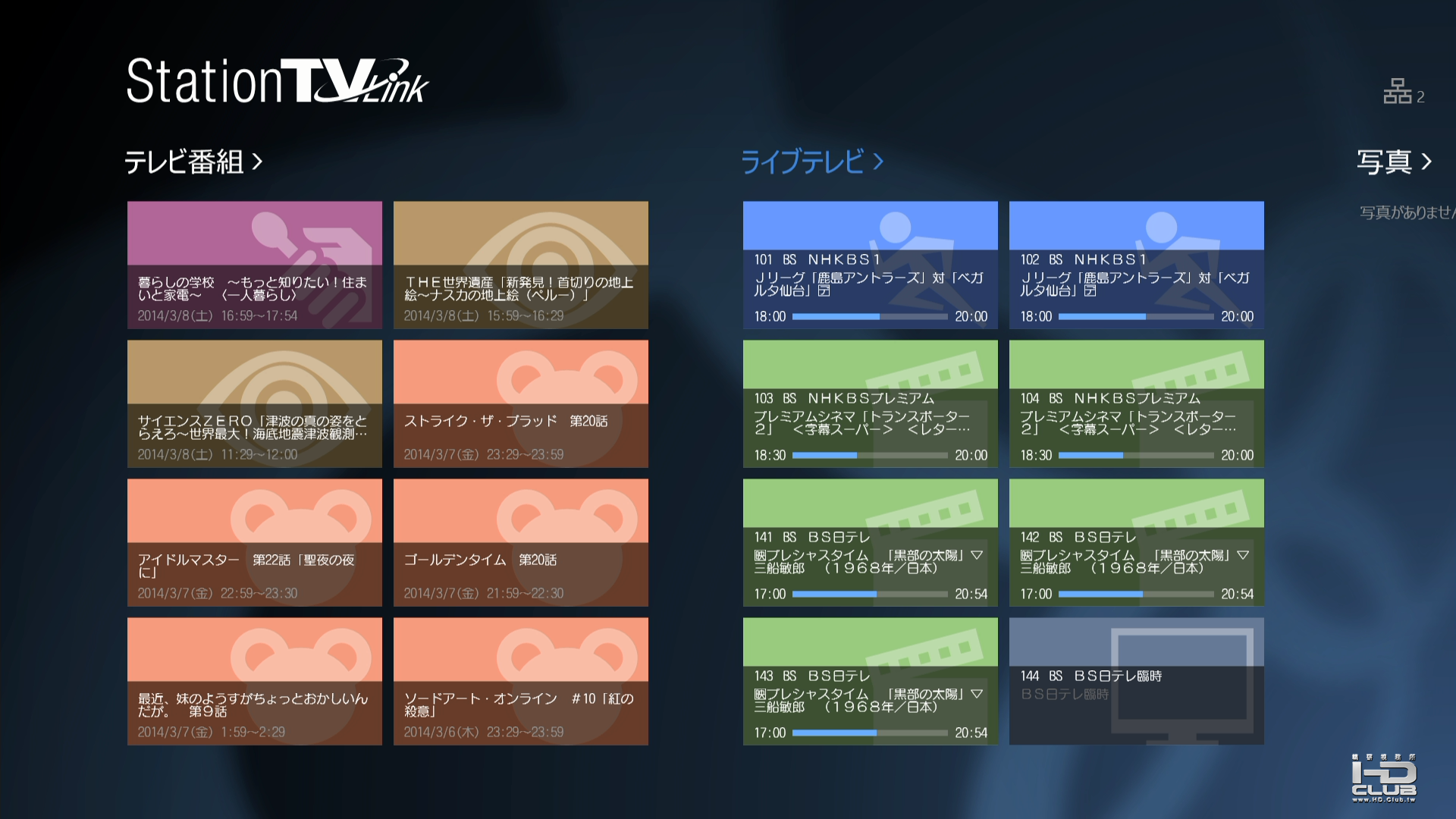 進入 ライブテレビ 項目, 就可以看到目前所有的節目列表, 每個節目圖示下方的 Bar, 可以看到節目現在進行到哪裡, 精美程度已經不會輸給正牌的 BS 接收機了!