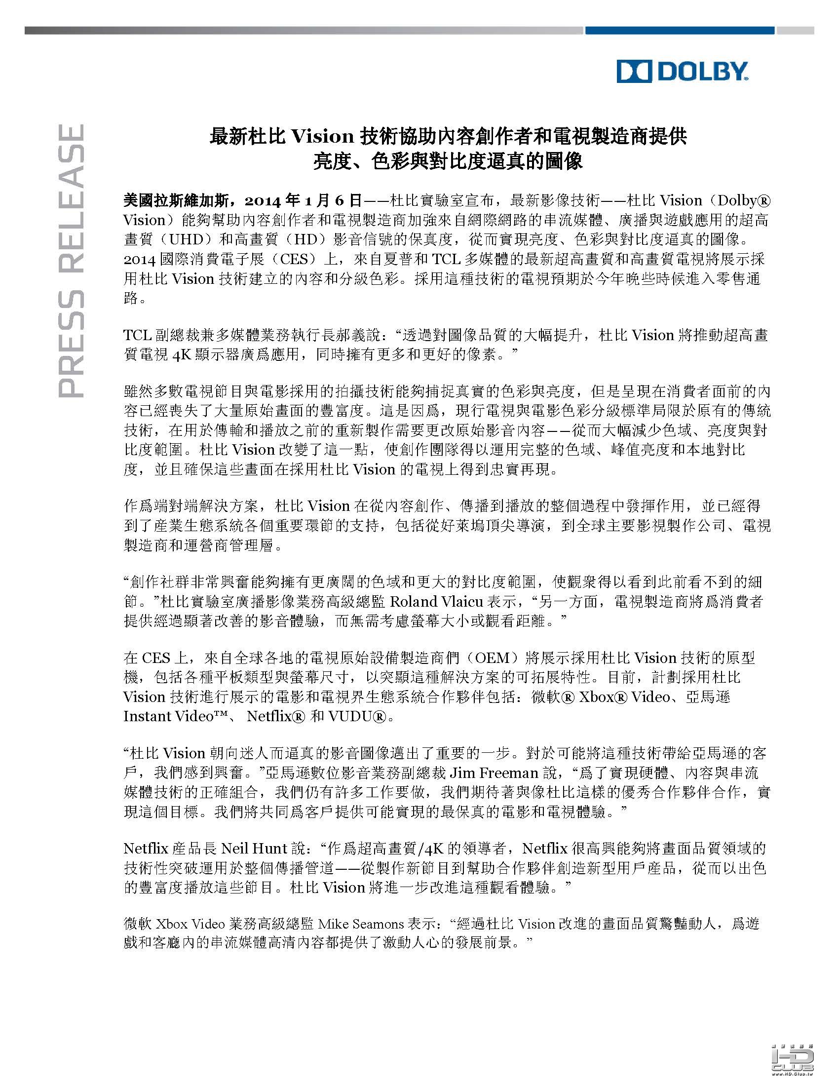 新聞稿:最新杜比Vision技術協助內容創作者和電視制造商提供亮度、色彩與對比度逼真的.jpg