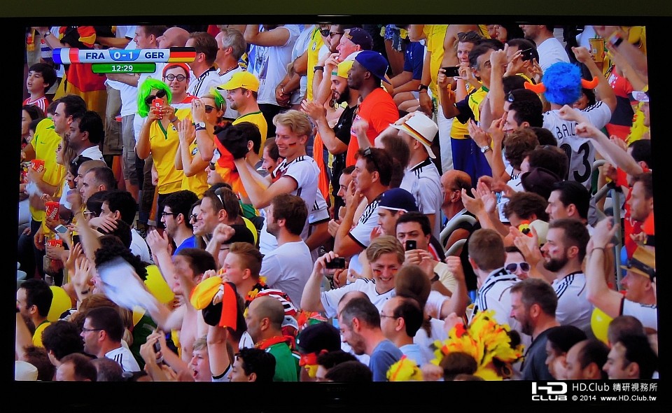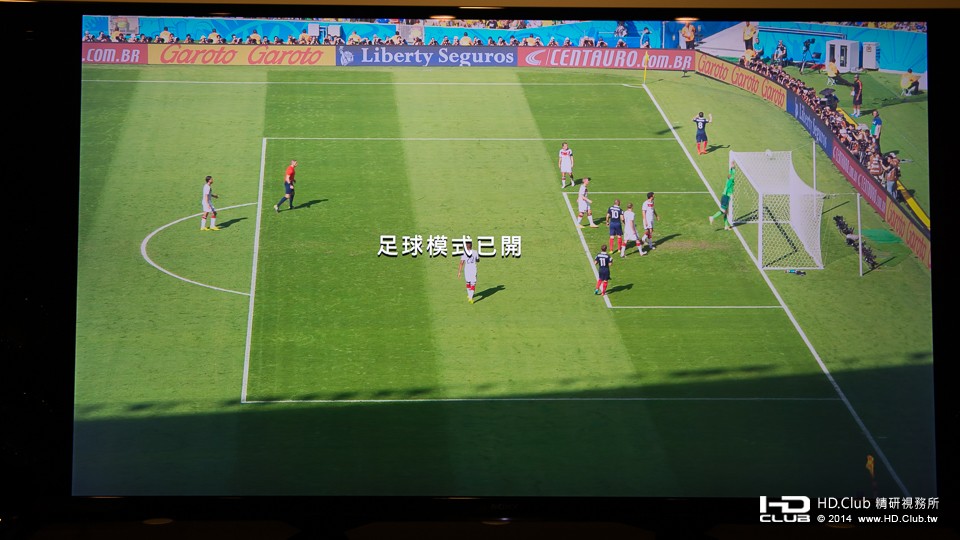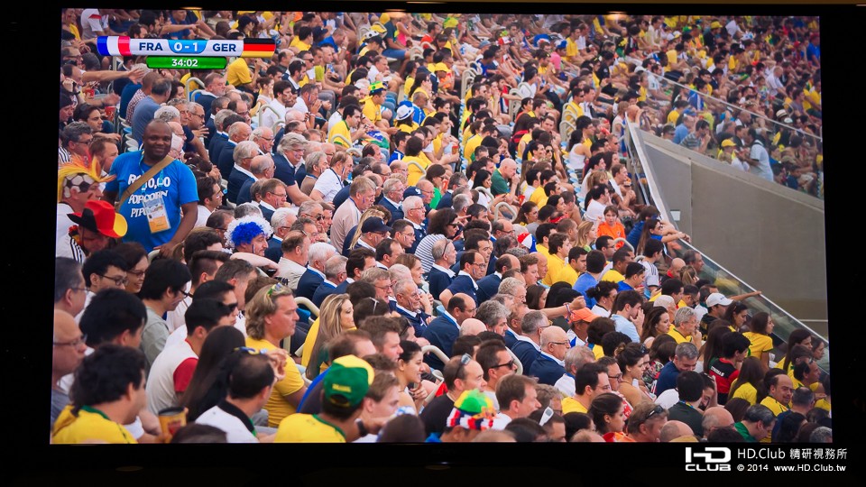 7. 世足賽4K60P的轉播 : 這是此次體驗會,大家最感興趣也是最為刺激的節目。觀看時的臨場感百分百,連遠處觀眾席上的球迷一舉一動都清楚無比。被踢的足球 快速飛過的路徑,一點也不會有模糊的感覺,看得真是過癮極了。