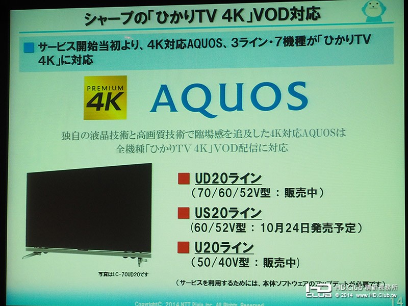 NTT plala的影像傳送服務「Hikari TV」,從10月27日開始提供4K影像的VOD服務「Hikari TV 4K」。